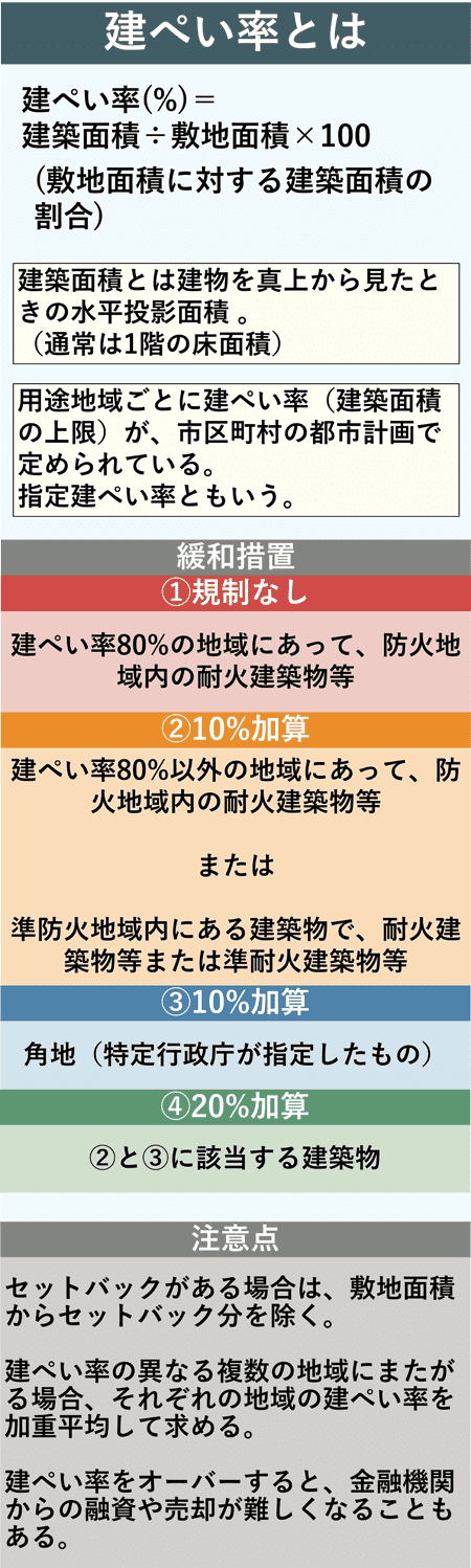 - 建ぺい率(敷地面積に対する建築面積の割合)