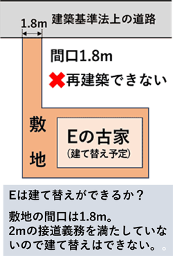 上記、建築基準法上の道路に2m以上接面していない土地は、再建築ができない。(建築基準法43条1項)